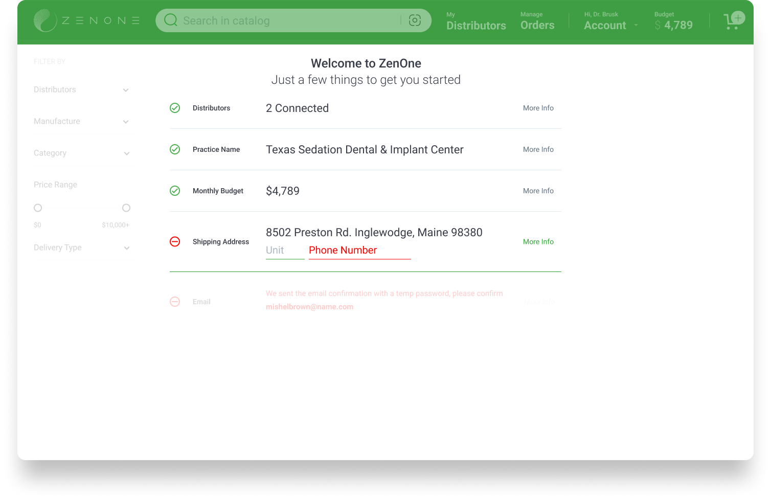 Used open Doctor's data. Helps us indefy user. It's enough only licence number. Build a great process, easy for user. When ask some data connect distributor and add email.