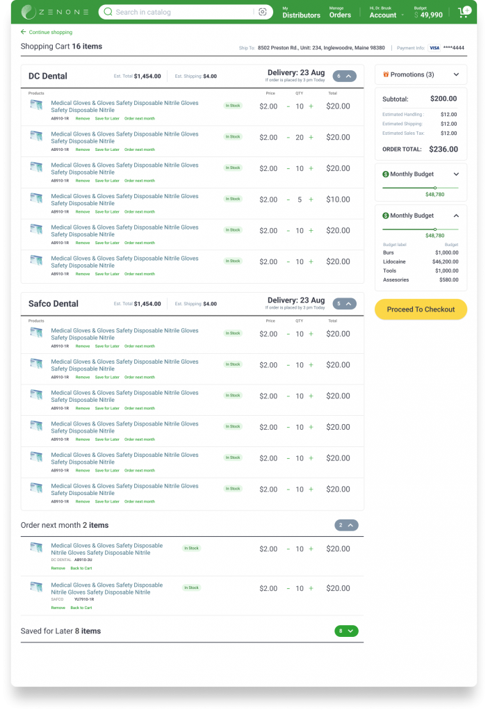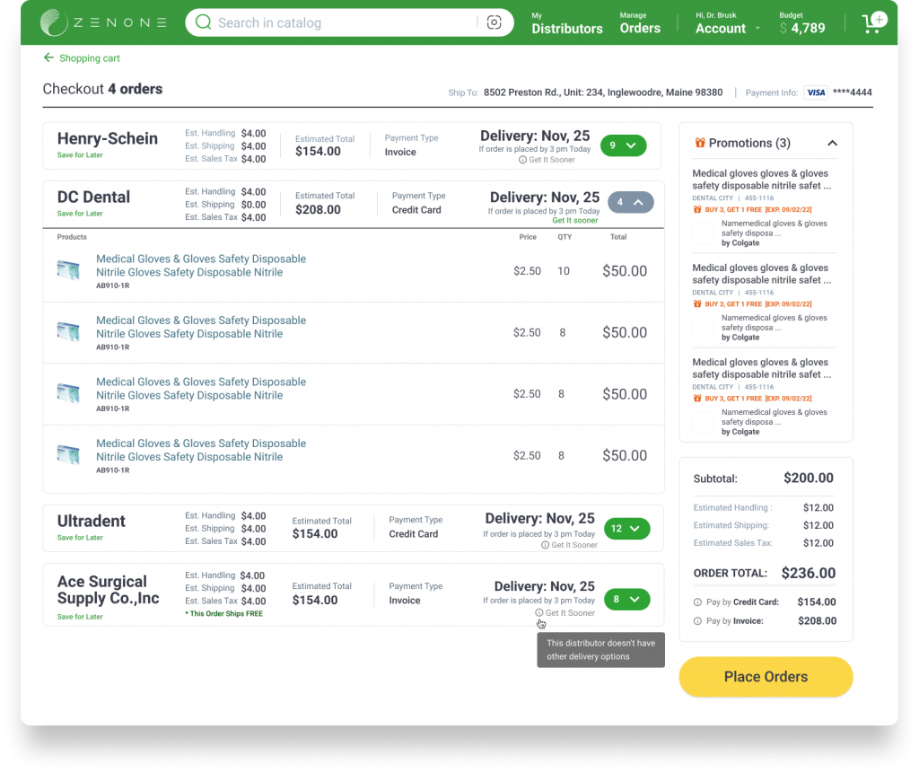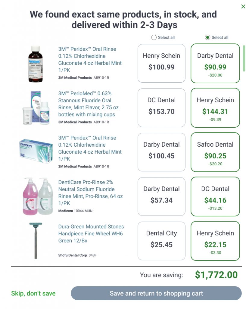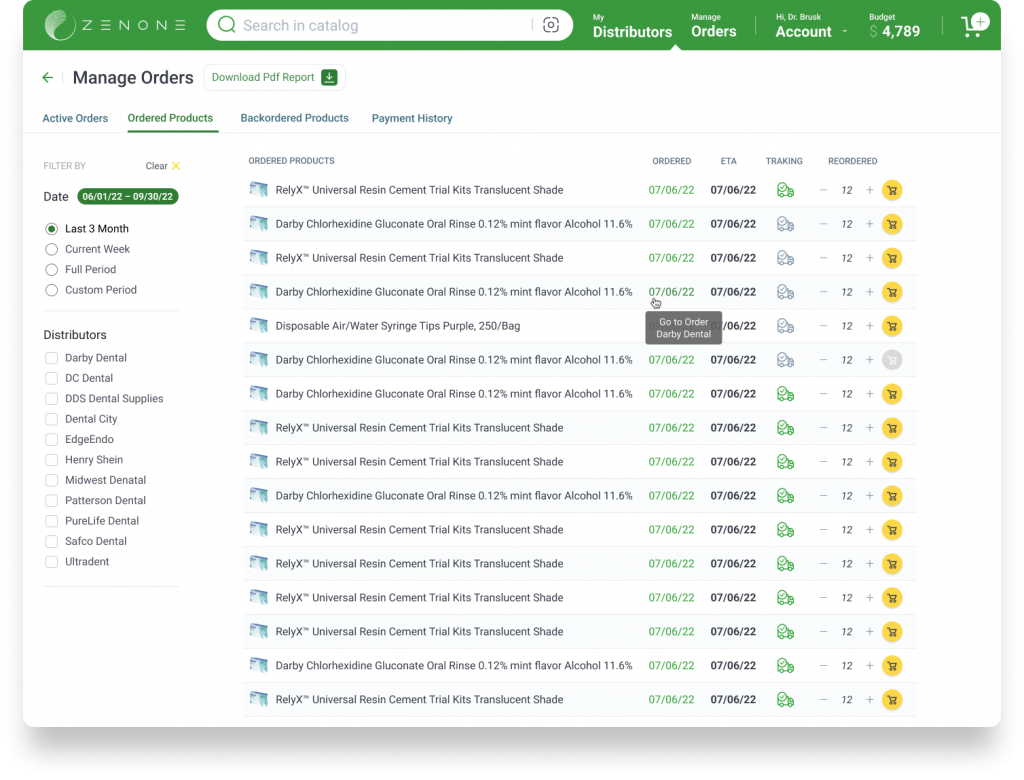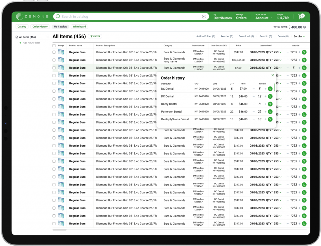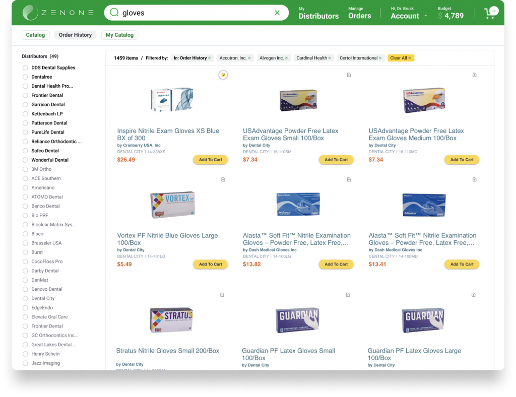 ZenOne helps save time and money by streamlining the inventory management and ordering process while also offering a best in class product catalog with comprehensive price comparisons.