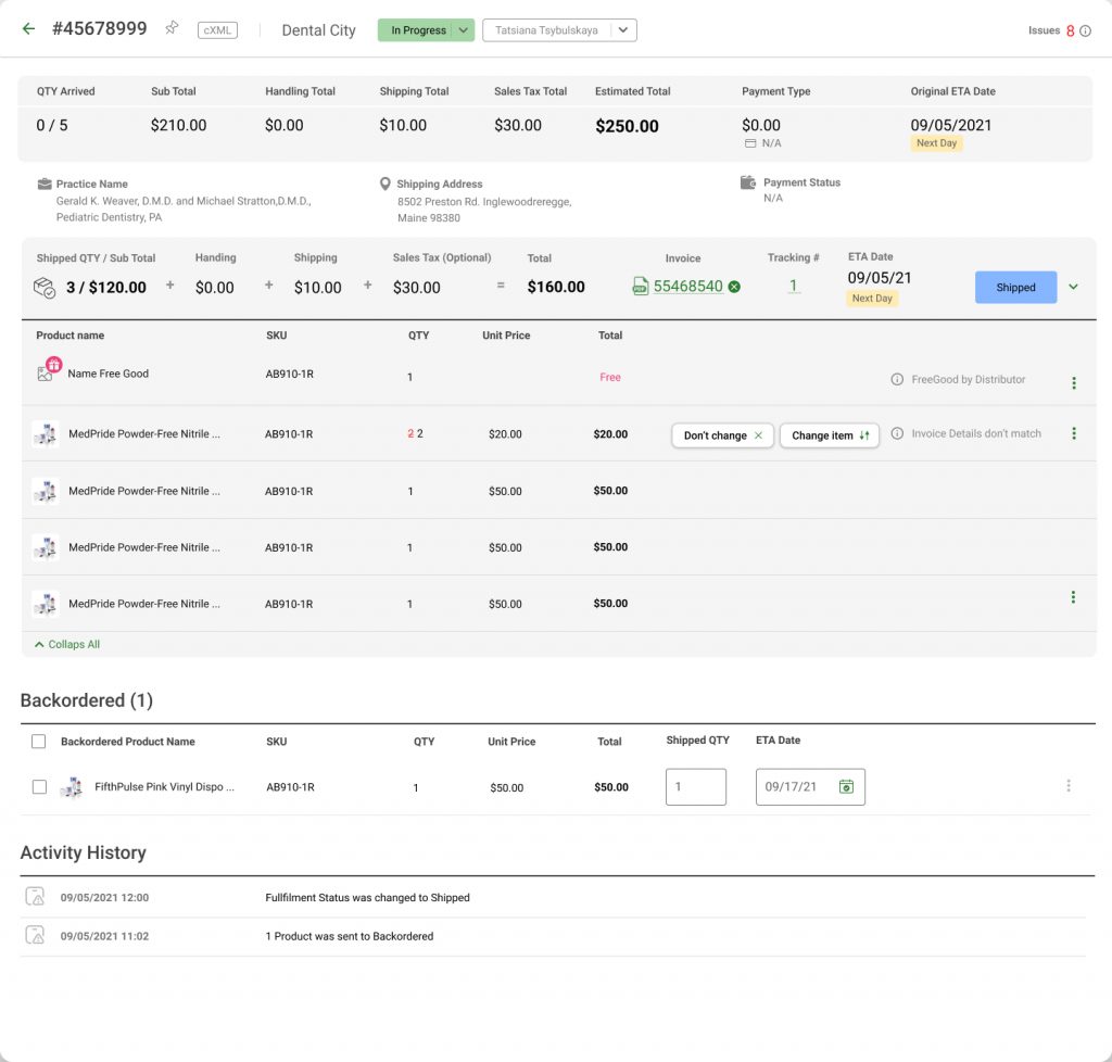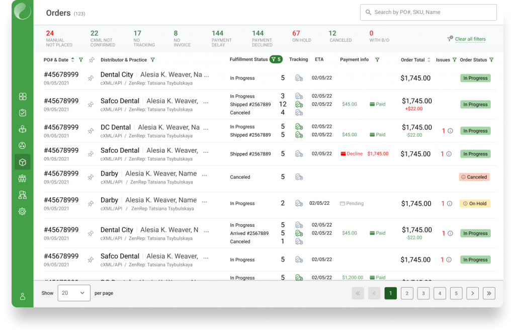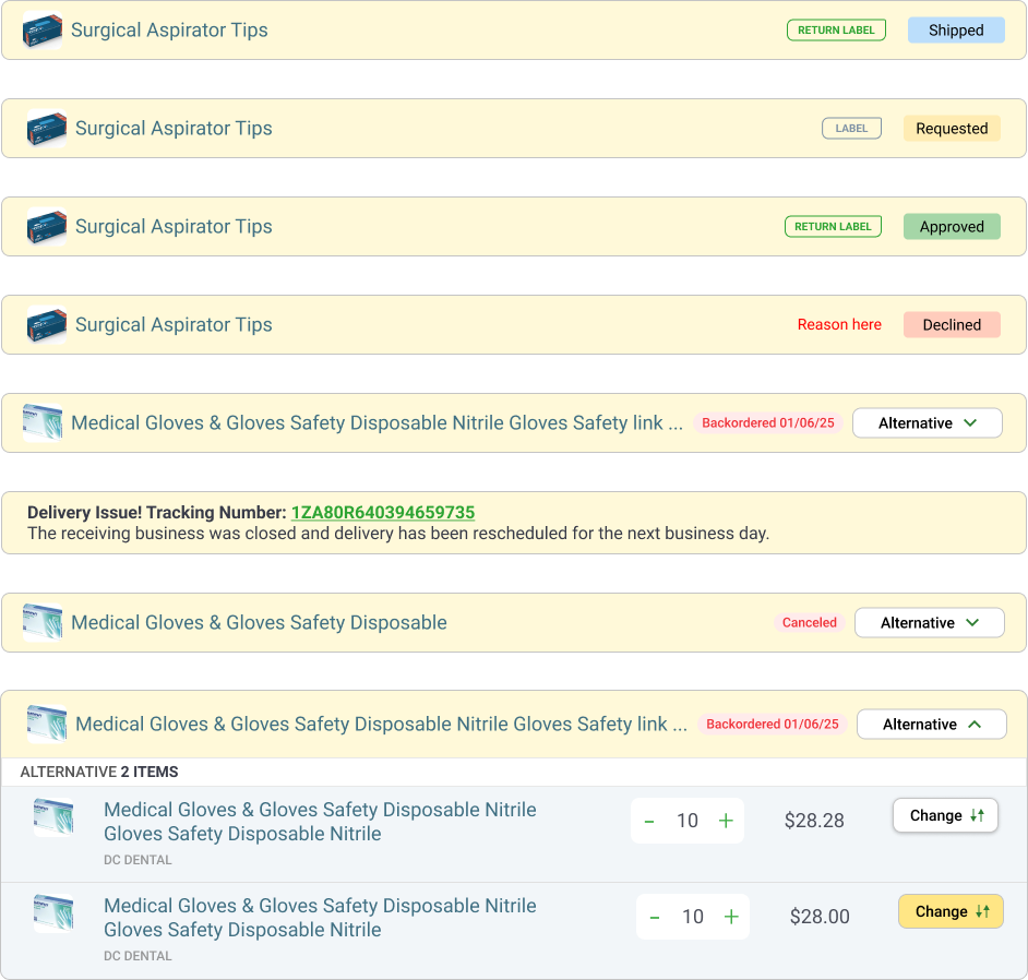 Build fulfilment process to easy understand for dental assists identify and control they all orders. Have ability to check returns and control payment.